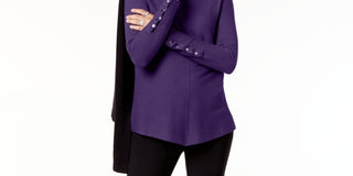 Alfani Women's Ribbed Snap Detail Sweater Purple Size Large