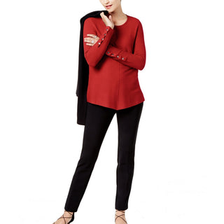 Alfani Women's Ribbed Snap Detail Sweater Red Size PXL