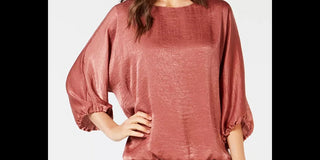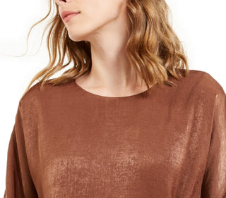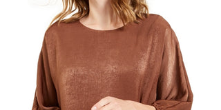 Alfani Women's Satin Dolman Sleeve Bubble Top Brown Size Small