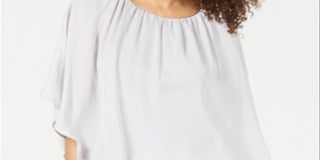 Alfani Women's Satin Bubble Hem Top Silver Size Petite XL