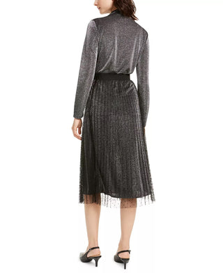 Alfani Women's Swiss-Dot Metallic Midi Skirt Dark Gray Size Petite Medium