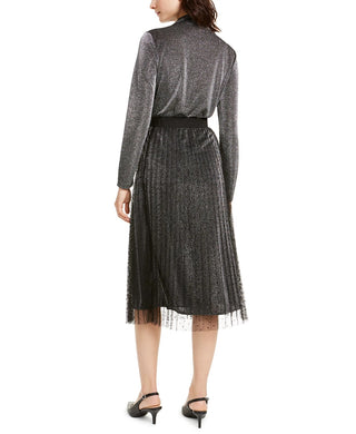 Alfani Women's Swiss Dot Metallic Midi Skirt Gray Size PL