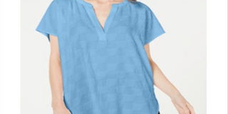Alfani Women's Textured Short Sleeve V Neck Evening Top Blue Size Petite Small