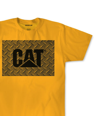 Caterpillar Men's Work Diamond Plate Logo Graphic T-Shirt Yellow Size Medium