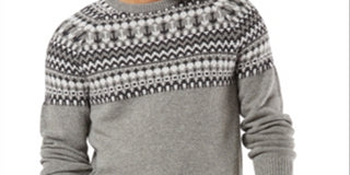 Dockers Men's Fair Isle Long Sleeve Crew Neck Wool Blend Sweater Gray Size Large