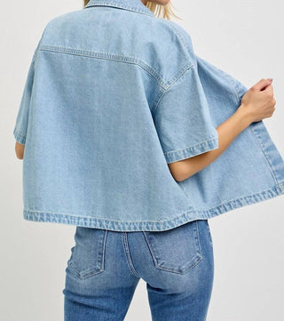 Risen - Cropped Denim Button Down Shirt