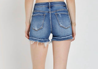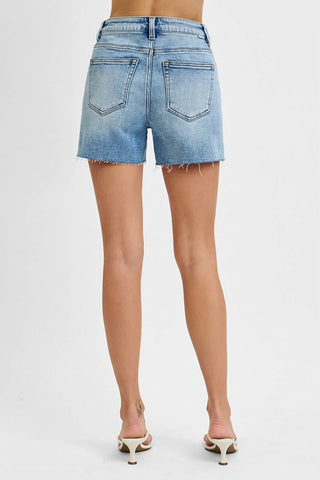 Risen - Curvy Tummy Control High Rise Mid Length Raw Cut Hem Shorts