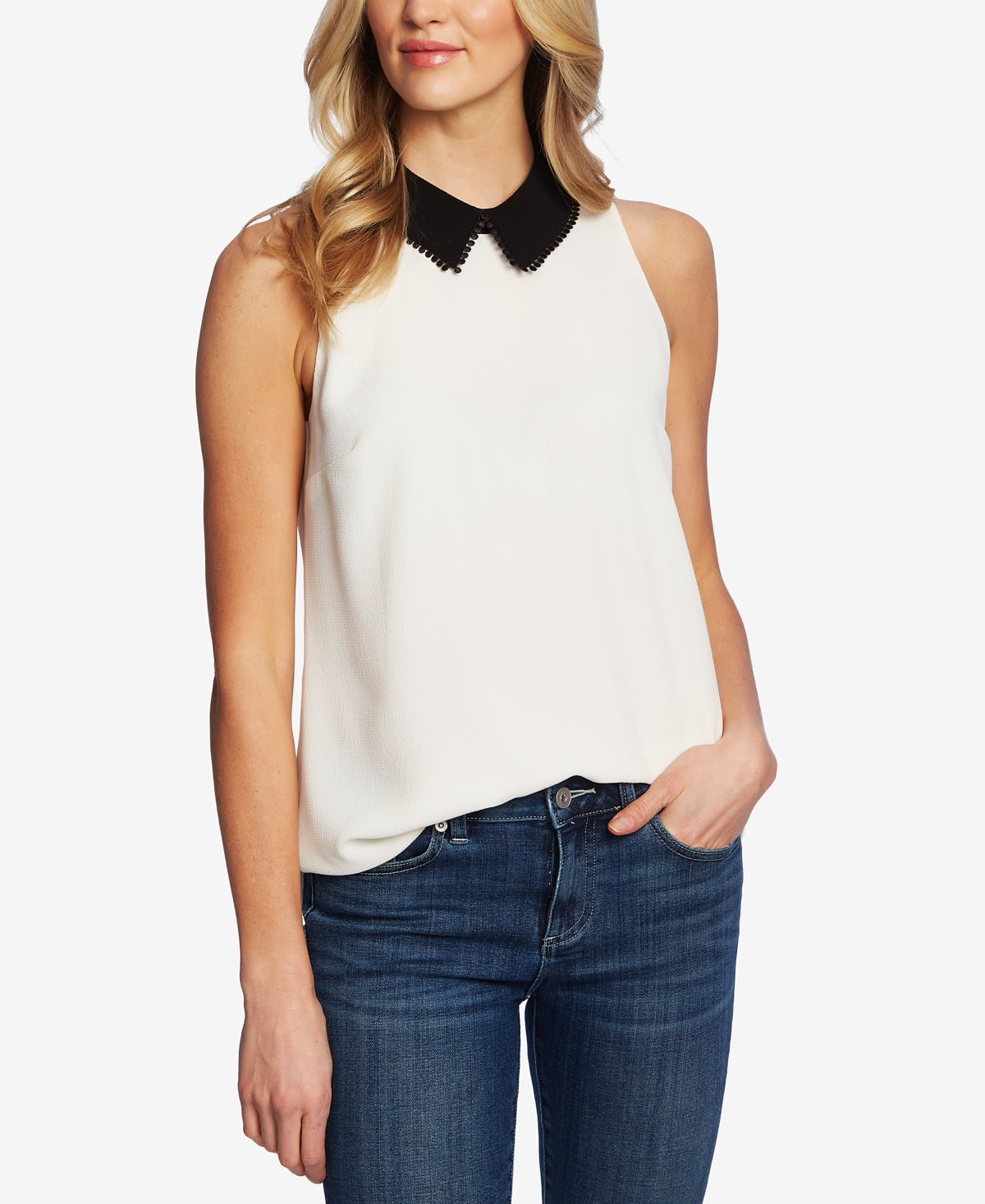 CeCe Women's Sleeveless Peter Pan Collar Top Soft Ecru Size Small