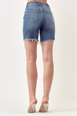 Risen - Distressed High Rise Thigh Shorts - Plus