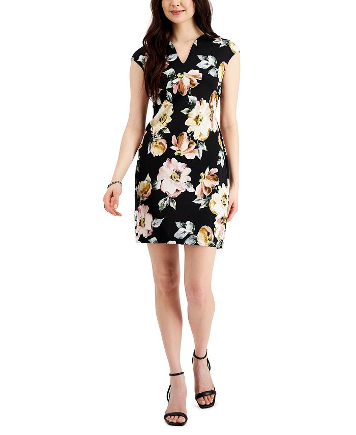Connected Women's Printed Cap Sleeve Scuba Crepe Dress Pink Size 8Petite