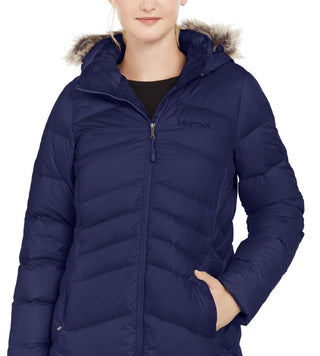 Marmot Women's Montreal Hooded Faux Fur Trim Coat Blue Size X-Large