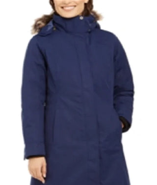 Marmot Women's Hooded Faux Fur Trim Coat Blue Size Medium