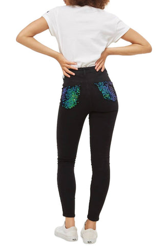 Topshop - Jamie Moto Mermaid Sequin Front Skinny Jeans