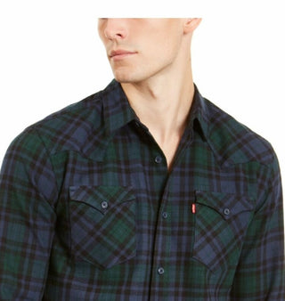 Levi's Men's Plaid Collared Work Dress Green Size Large