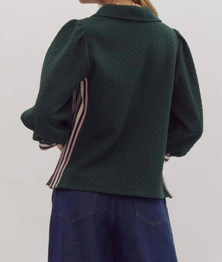 Entro - Misha Stripped Zipper Neckline Sweatshirt Dress