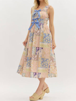 Entro - Multi-pattern Bow Detail Midi Dress