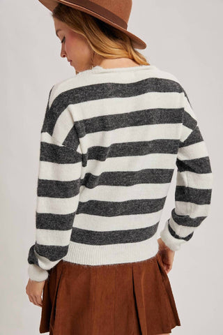 Bluivy - Women's Inner Tank Top Fuzzy Striped Knit Sweater