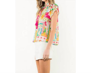 Thml - Flutter Sleeve Floral Tassel Tie Top
