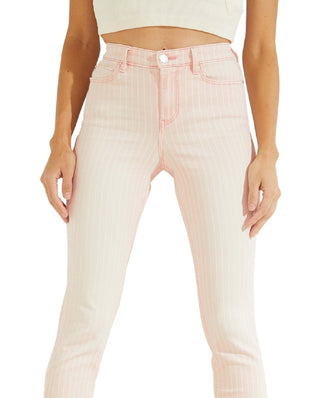 GUESS Women's 1981 Striped Skinny Jeans Pink Size 30X29