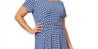 Leota Women's Brittany Print Fit & Flare Jersey Midi Dress Blue Size 1X