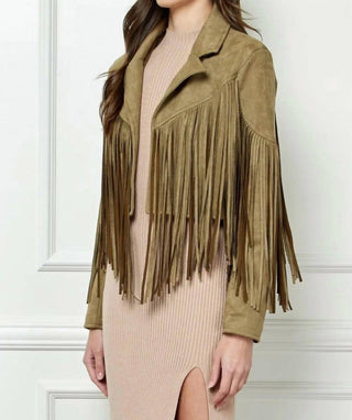 Trendsi - Veveret Suede Fringe Long Sleeve Moto Jacket