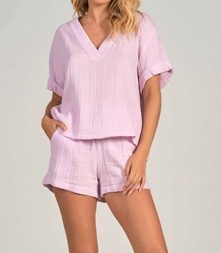 Elan - Short Sleeve Cotton Gauze V-neck Top