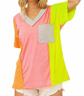 Bibi - Women's Color Block V-Neck Top