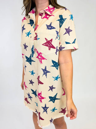 Bibi - Washed Denim Frayed Hemline Short Dress