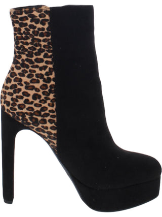 Guess Women's Animal Print 1 Platform Almond Toe Stiletto Zip up Dress Booties Black Size 8.5 M