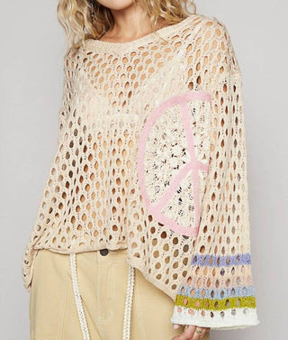 Pol - Openwork Balloon Sleeve Knit Cover Up