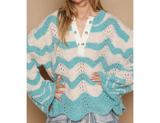 Pol - Oversize Round Neck Stripes Solid Pullover Sweater