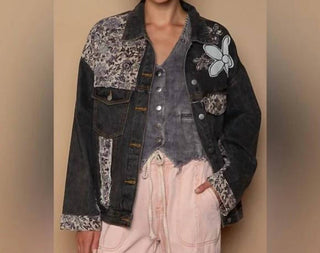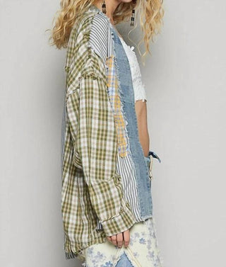 Pol - Oversized Contrast Lace Crochet Collared Button Down Shirt