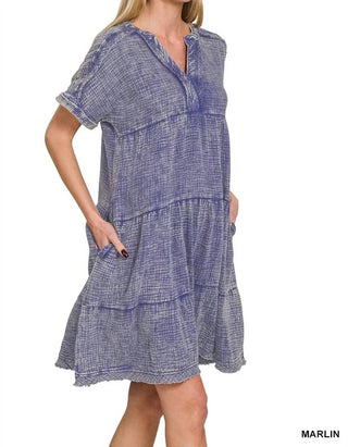 Zenana - Washed Double Gauze Raw Edge V-neck Dress