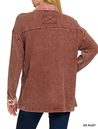 Zenana - Tori Waffle Knit Acid Wash Shacket