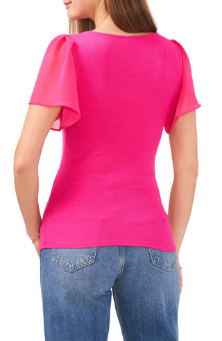 1.STATE V-Neck Chiffon Top Flutter Sleeve in Vintage Garden Size XS