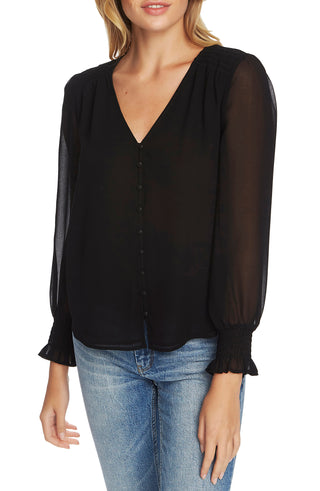 1.STATE Women's Dot Button Front Blouse Black Size Small