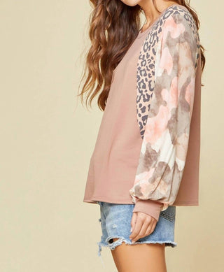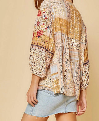 Andree By Unit - Mixed Print Balloon Sleeve Top