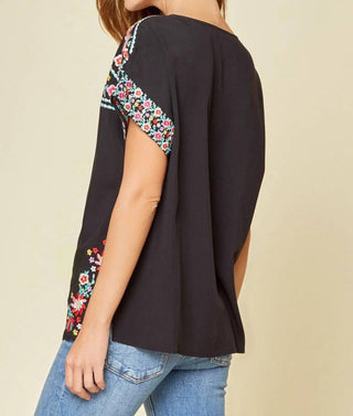 Andree By Unit - Embroidered Plaid Babydoll Top