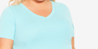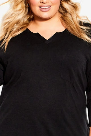 Avenue Women's Notch Neck 3/4 Sleeve Plain T-Shirt Black Size 18W