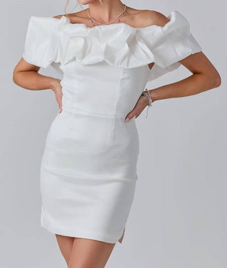 Baby Pink - Off The Shoulder Big Ruffle Mini Dress