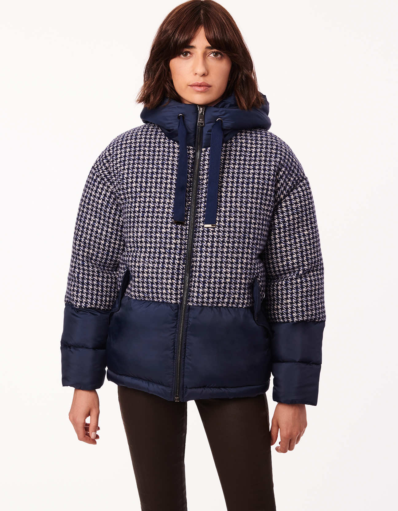 Bernardo Heavy Mixed Media Water Resistant Puffer Jacket in Navy Blue Size Large