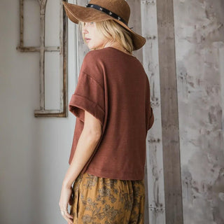 Bucketlist - Solid Blushed Knit Oversize Henley Top