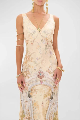 Camilla - Camilla V-neck Jacquard Slip Midi Dress