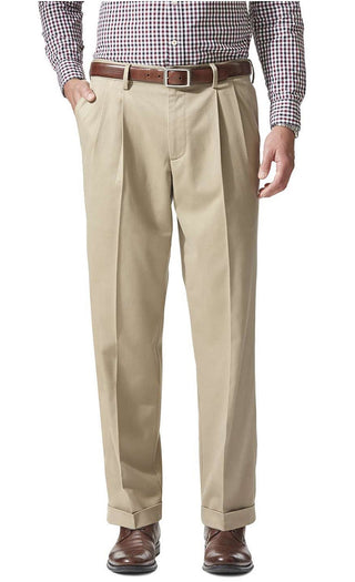 Dockers Men's Comfort Relaxed Pleated Cuffed Fit Khaki Stretch Pants Brown Size 40X30