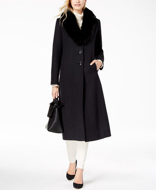 Forecaster Women's Fox-Fur-Collar Maxi Reefer Coat Navy Size 4