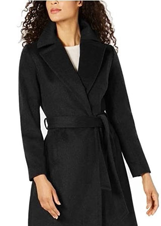 Forecaster Women's Fox Fur Collar Belted Maxi Wrap Coat -Black Size 16