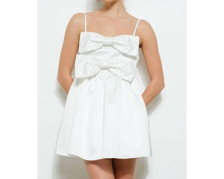 Ina - Pearl-embellished Double Bow Detail Mini Dress