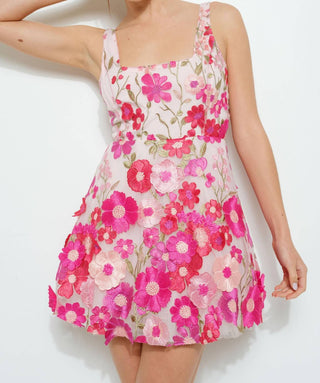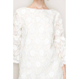 Ina - Floral Lace Three Quarter Sleeves Mini Dress