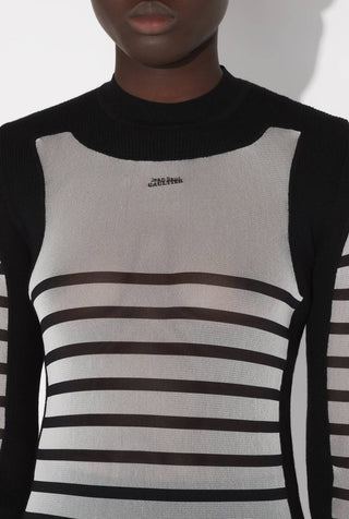Jean Paul Gaultier - Mix Mesh And Knit Long Sleeves Pullover Printed "mariniere"