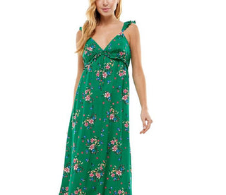 Kingston Junior's Floral Print Maxi Dress Green Size Large